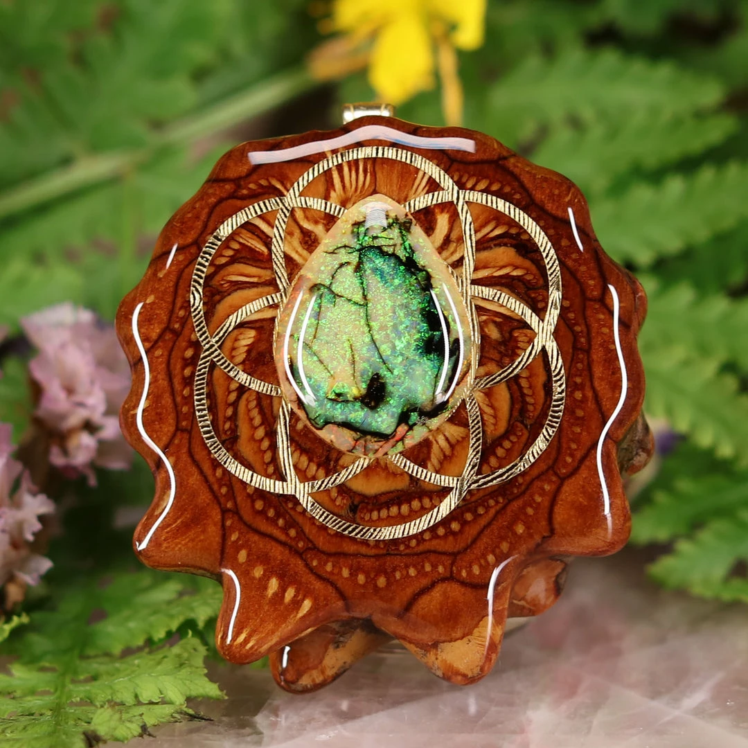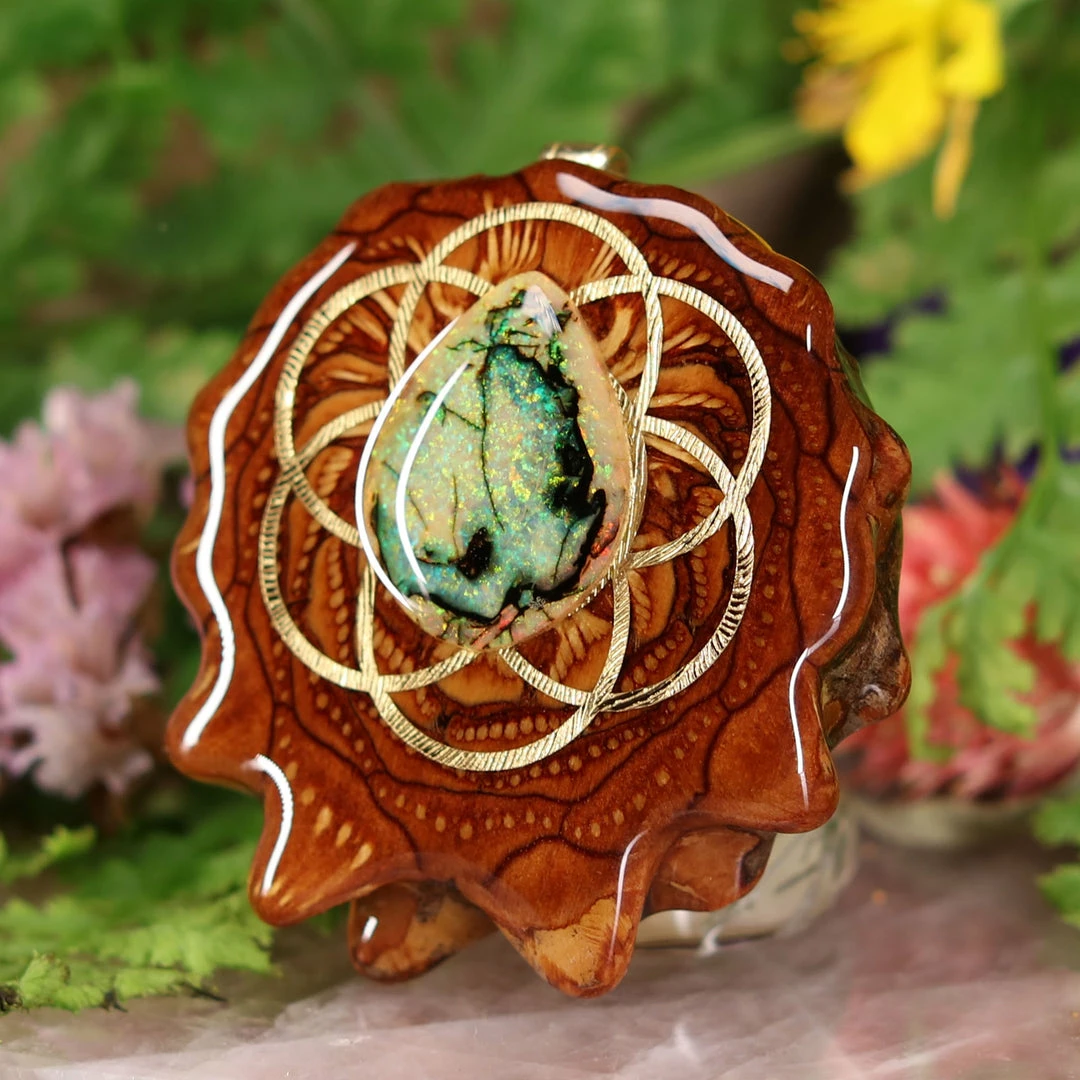 TEP Pendants Sterling Opal With Gold Seed Of Life