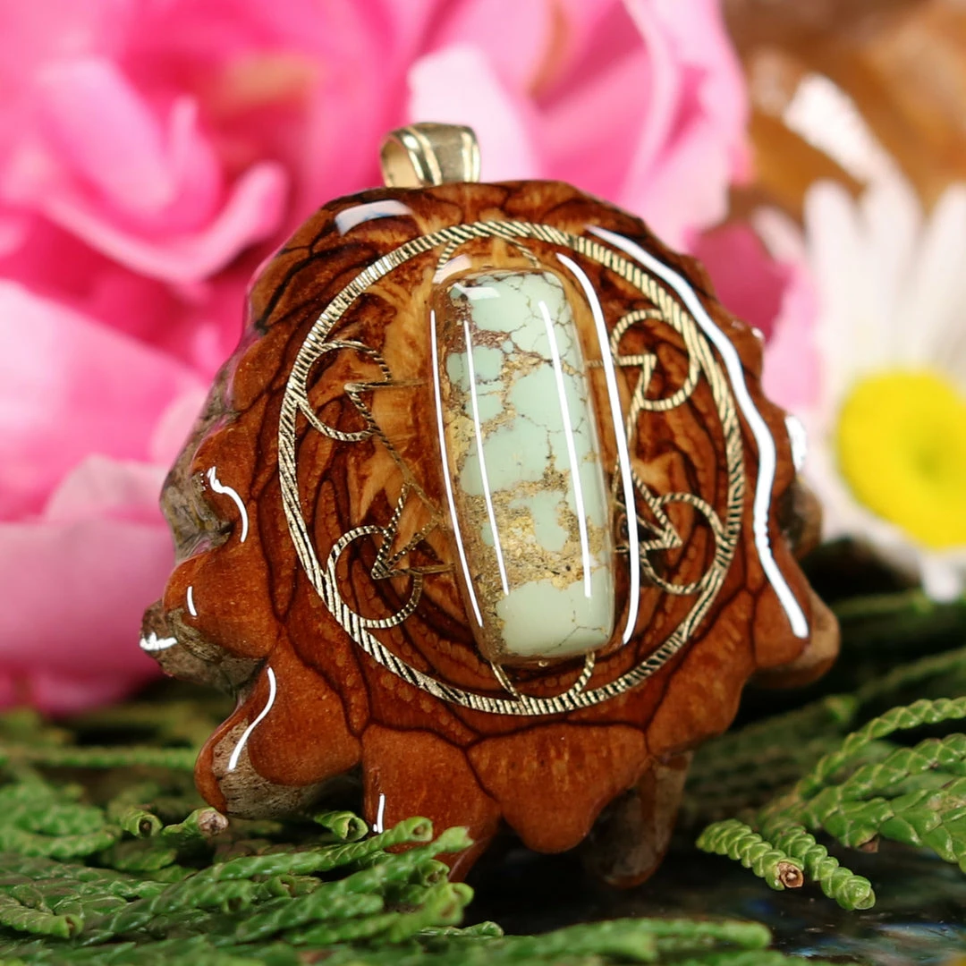 Every pinecone pendant is an elegant gift from Mother Nature — unveiling the ornate Sacred Geometry hidden at the center of one of the world’s densest Pinecones. Because only one cross-section is taken from the “heart” of each Cone, every pendant is absolutely unique, and truly one-of-a-kind.