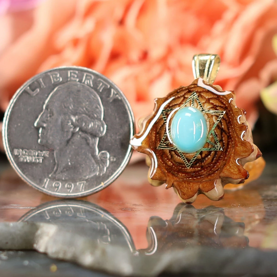 Every pinecone pendant is an elegant gift from Mother Nature — unveiling the ornate Sacred Geometry hidden at the center of one of the world’s densest Pinecones. Because only one cross-section is taken from the “heart” of each Cone, every pendant is absolutely unique, and truly one-of-a-kind.