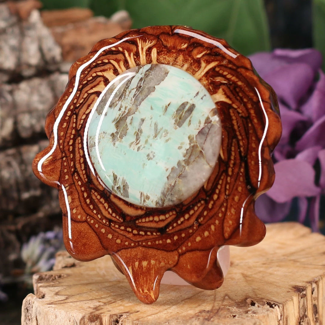 A stone of encouragement, Variscite helps to peacefully open the heart chakra and thus forge a sense of hope and courage. This stone has a joyous and loving energy that bestows a realistic sense of self and inner peace. For Spiritual practicioners, Variscite is an aid in past life exploration and is utilized in the stimulation of visual images to help better draw the parallels between the past experiences of ones soul and their current physical presence on earth. Variscite has a synchronistic capability of allowing etheric and physical body to connect and heal.
