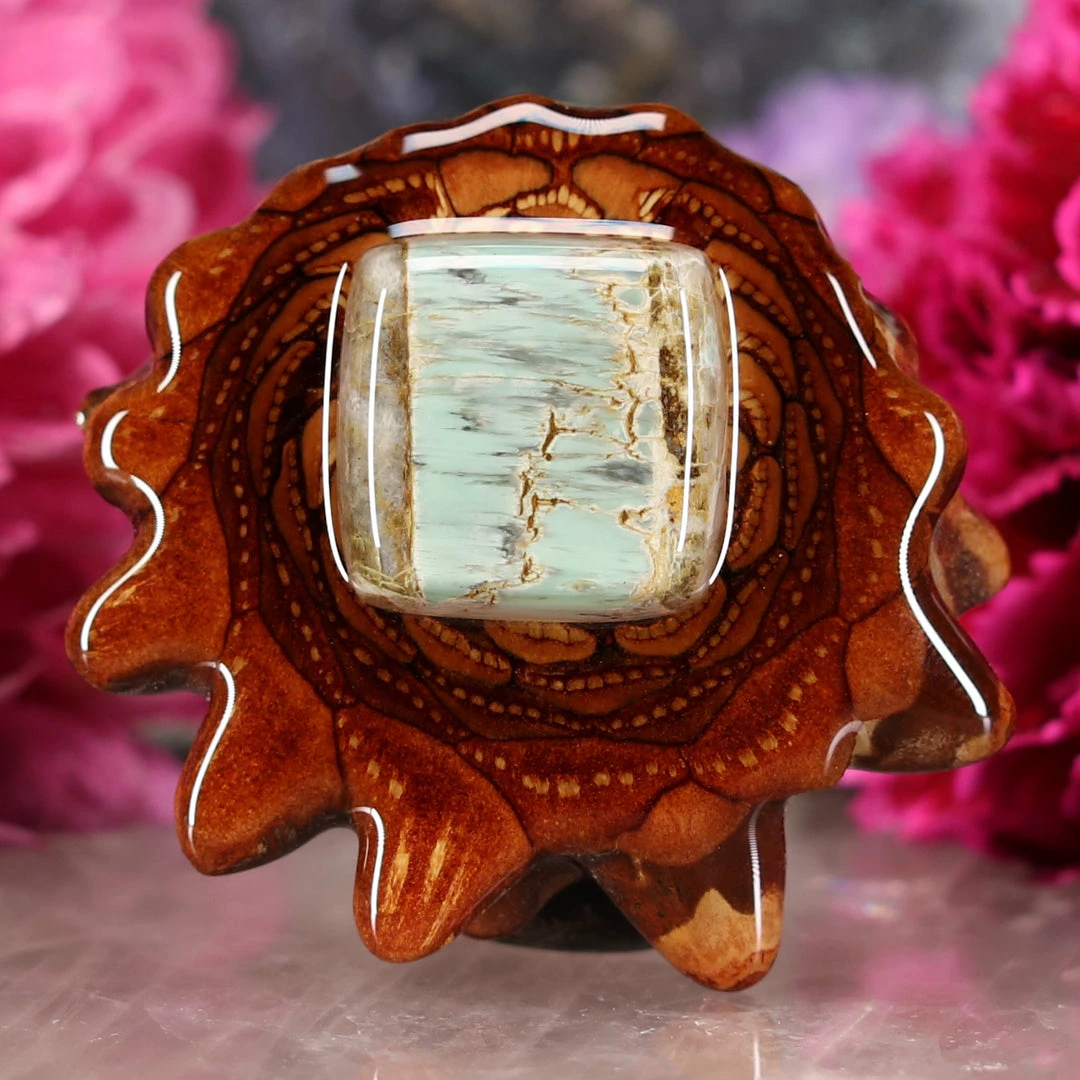 A stone of encouragement, Variscite helps to peacefully open the heart chakra and thus forge a sense of hope and courage. This stone has a joyous and loving energy that bestows a realistic sense of self and inner peace. For Spiritual practicioners, Variscite is an aid in past life exploration and is utilized in the stimulation of visual images to help better draw the parallels between the past experiences of ones soul and their current physical presence on earth. Variscite has a synchronistic capability of allowing etheric and physical body to connect and heal.