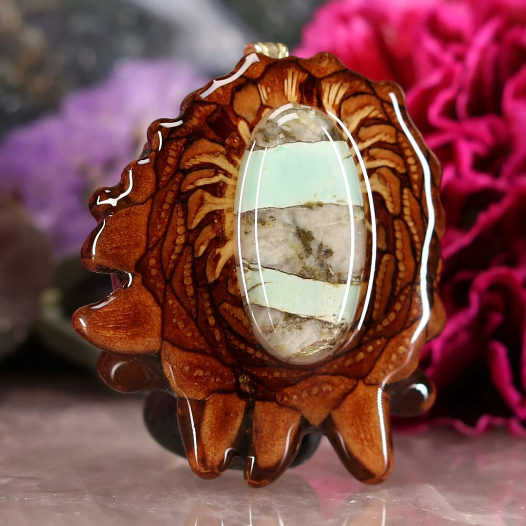 Every pinecone pendant is an elegant gift from Mother Nature — unveiling the ornate Sacred Geometry hidden at the center of one of the world’s densest Pinecones. Because only one cross-section is taken from the “heart” of each Cone, every pendant is absolutely unique, and truly one-of-a-kind.