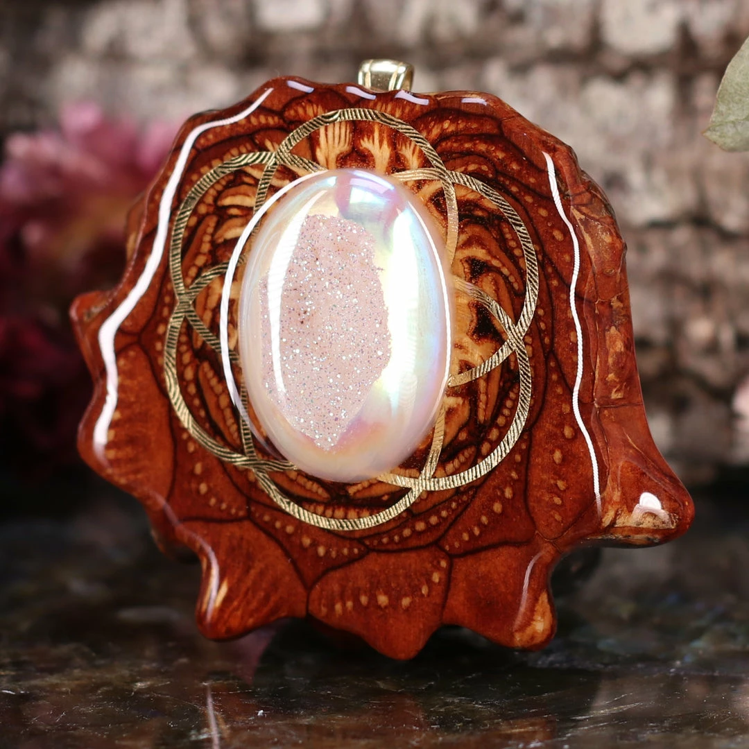 Every pinecone pendant is an elegant gift from Mother Nature — unveiling the ornate Sacred Geometry hidden at the center of one of the world’s densest Pinecones. Because only one cross-section is taken from the “heart” of each Cone, every pendant is absolutely unique, and truly one-of-a-kind.