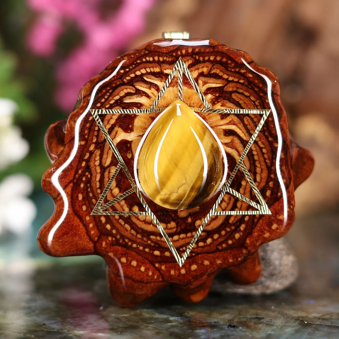 TEP Pendants Yellow Tiger’s Eye With Gold Merkaba