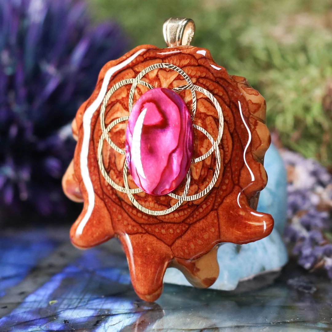 Every pinecone pendant is an elegant gift from Mother Nature — unveiling the ornate Sacred Geometry hidden at the center of one of the world’s densest Pinecones. Because only one cross-section is taken from the “heart” of each Cone, every pendant is absolutely unique, and truly one-of-a-kind.