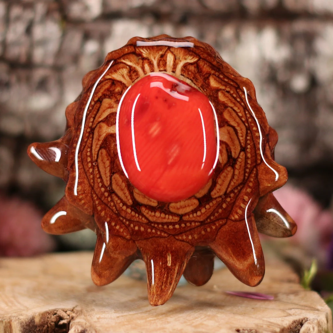 Every pinecone pendant is an elegant gift from Mother Nature — unveiling the ornate Sacred Geometry hidden at the center of one of the world’s densest Pinecones. Because only one cross-section is taken from the “heart” of each Cone, every pendant is absolutely unique, and truly one-of-a-kind.