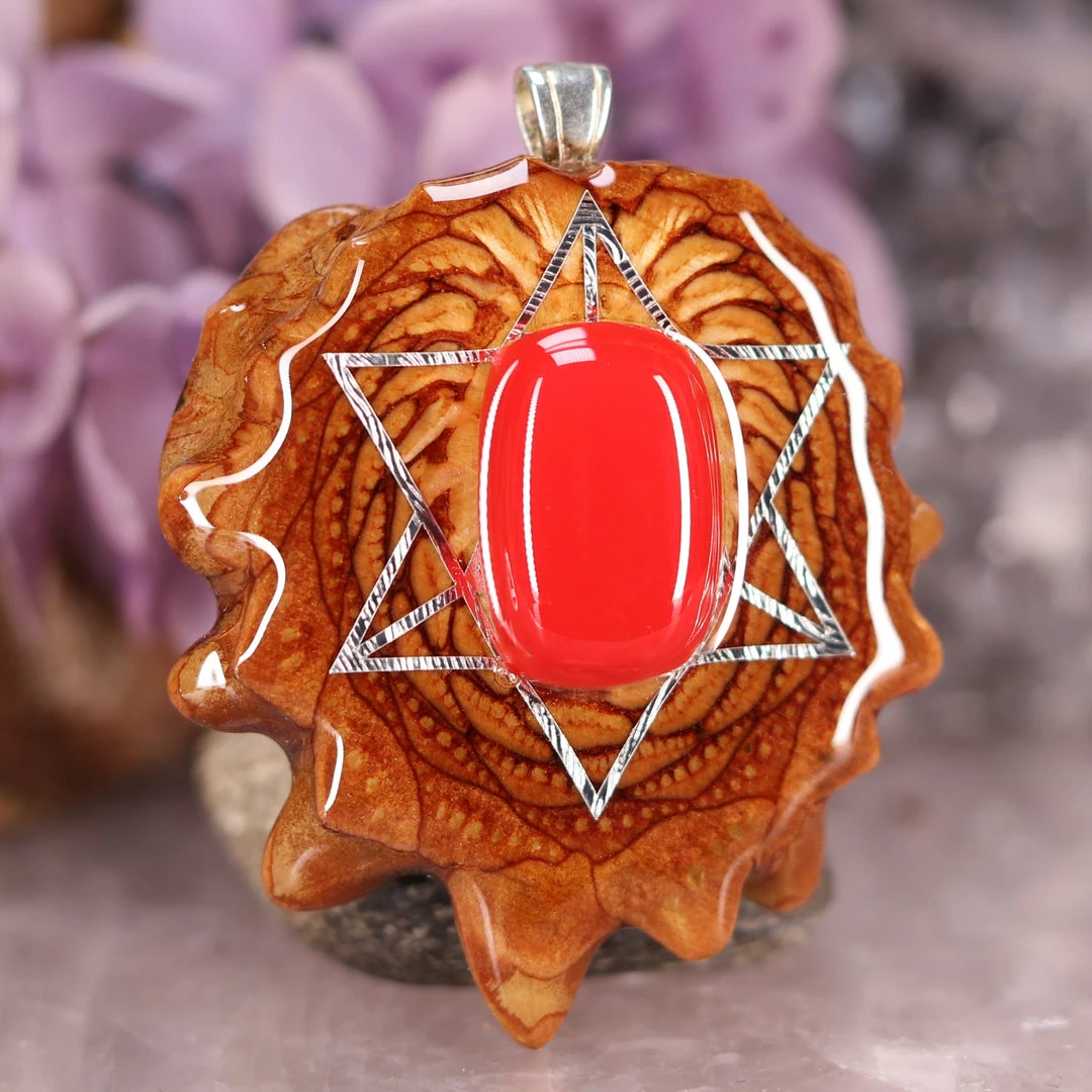 Every pinecone pendant is an elegant gift from Mother Nature — unveiling the ornate Sacred Geometry hidden at the center of one of the world’s densest Pinecones. Because only one cross-section is taken from the “heart” of each Cone, every pendant is absolutely unique, and truly one-of-a-kind.