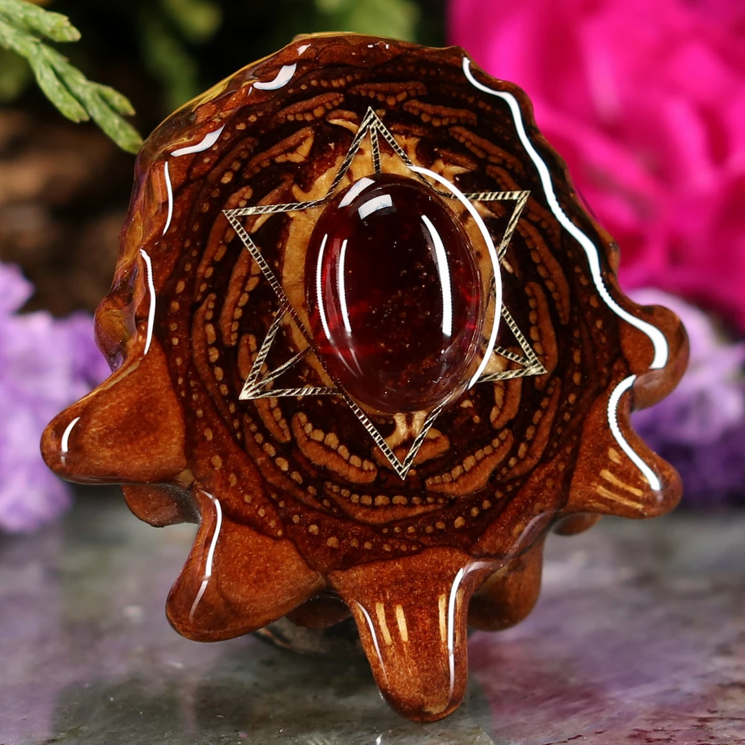 This Pinecone has been anointed with our “Merkaba” emblem, cast in 24k Gold. Merkaba – “Mer” meaning Light, “Ka” meaning Spirit, and “Ba” meaning Body – is a powerful icon historically known as the “Vehicle of Ascension”. The Merkaba opens the mind to increased awareness and promotes deep conscious interconnection.