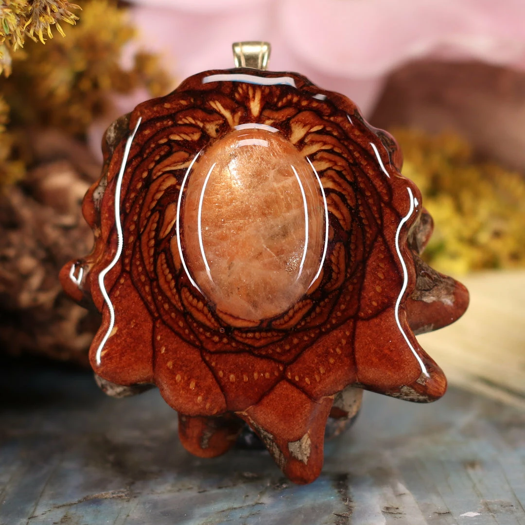 Every pinecone pendant is an elegant gift from Mother Nature — unveiling the ornate Sacred Geometry hidden at the center of one of the world’s densest Pinecones. Because only one cross-section is taken from the “heart” of each Cone, every pendant is absolutely unique, and truly one-of-a-kind.