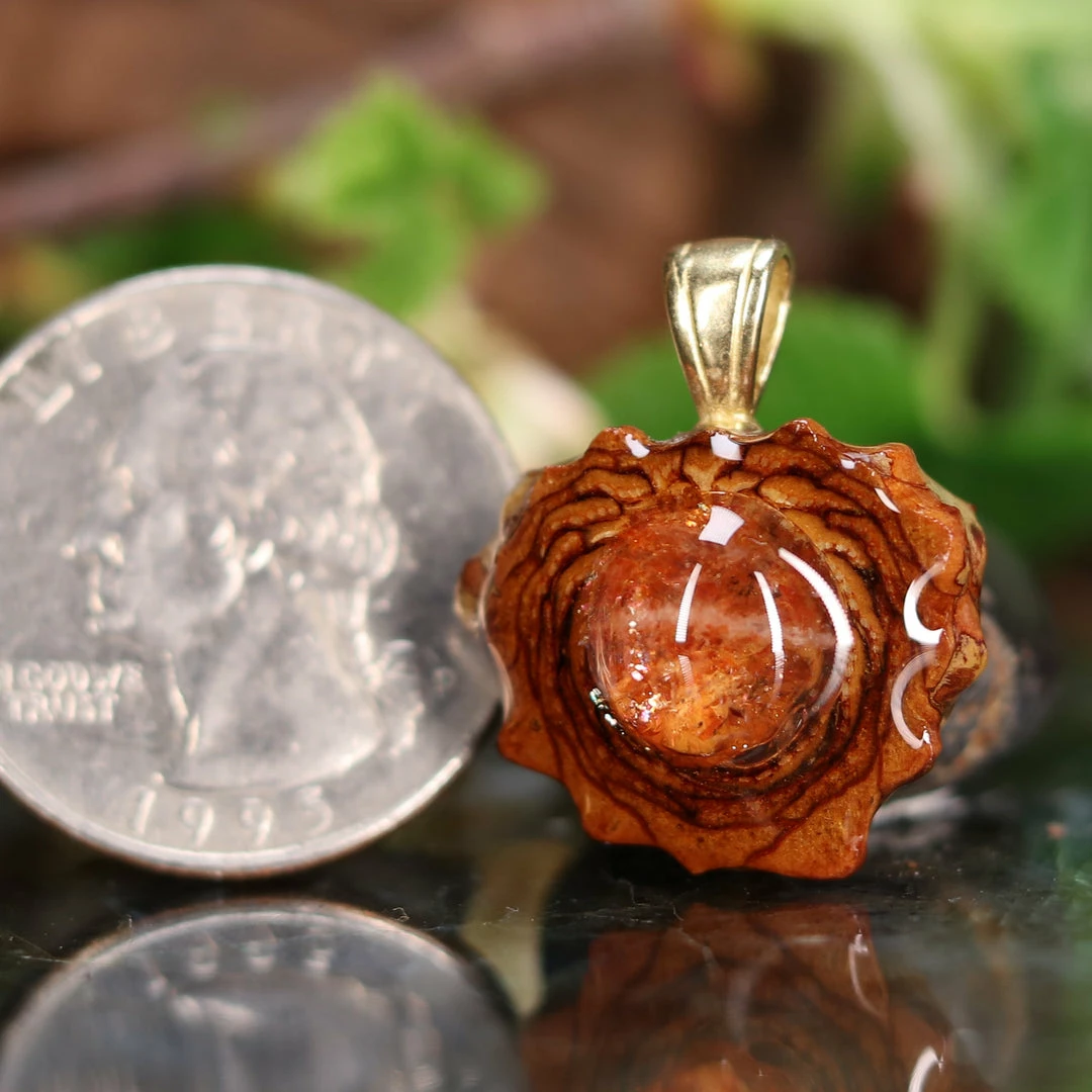 Every pinecone pendant is an elegant gift from Mother Nature — unveiling the ornate Sacred Geometry hidden at the center of one of the world’s densest Pinecones. Because only one cross-section is taken from the “heart” of each Cone, every pendant is absolutely unique, and truly one-of-a-kind.