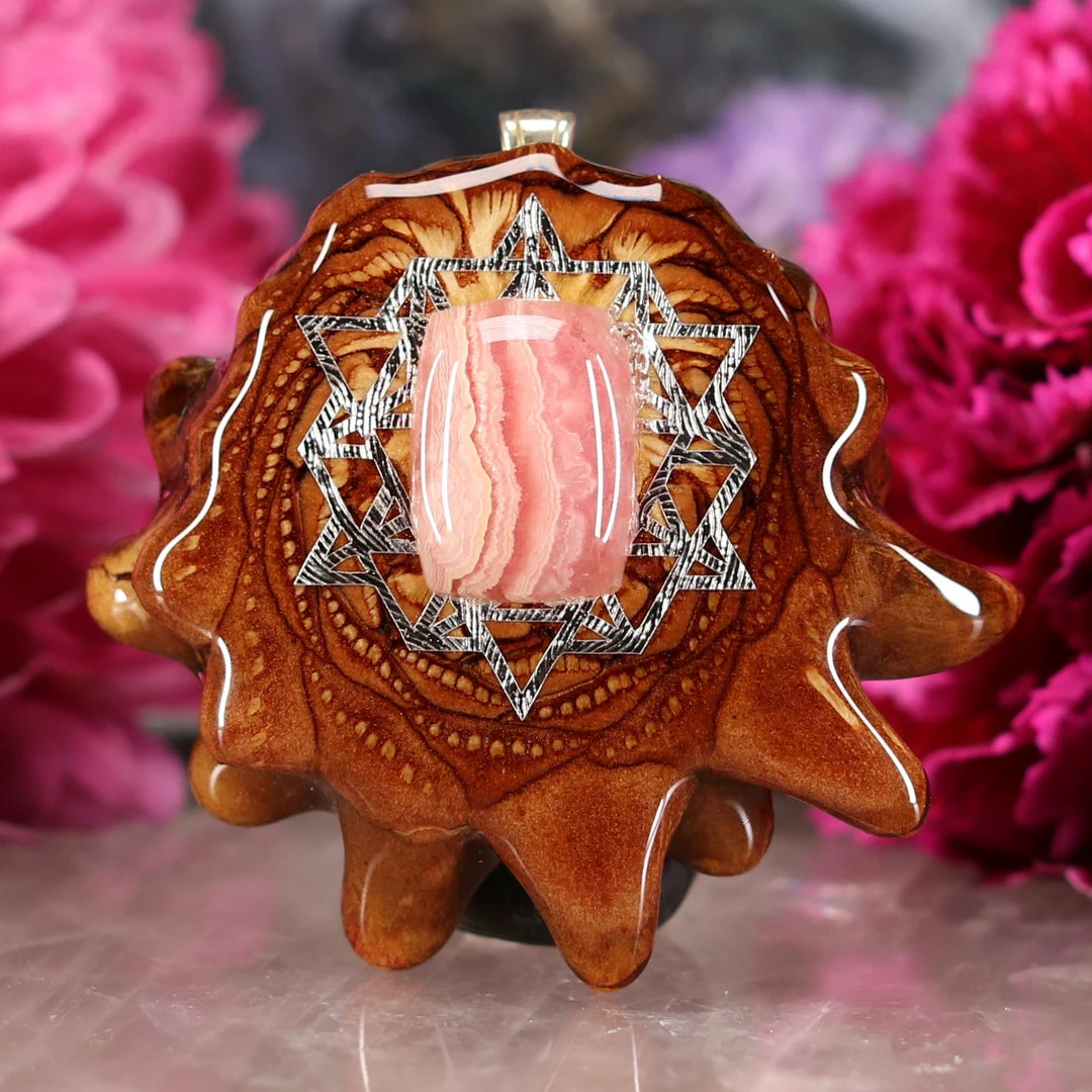 Every pinecone pendant is an elegant gift from Mother Nature — unveiling the ornate Sacred Geometry hidden at the center of one of the world’s densest Pinecones. Because only one cross-section is taken from the “heart” of each Cone, every pendant is absolutely unique, and truly one-of-a-kind.