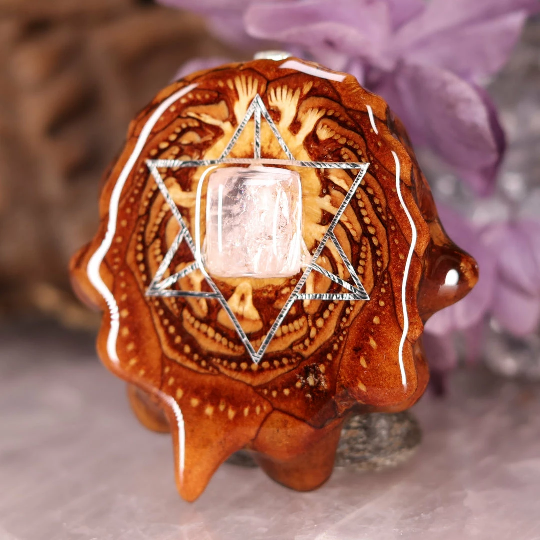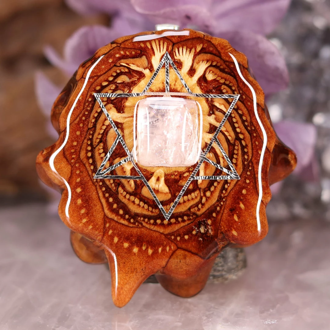 This Pinecone has been anointed with our “Merkaba” emblem, cast in Sterling Silver. Merkaba – “Mer” meaning Light, “Ka” meaning Spirit, and “Ba” meaning Body – is a powerful  icon historically known as the “Vehicle of Ascension”. The Merkaba opens the mind to increased awareness and promotes deep conscious interconnection.