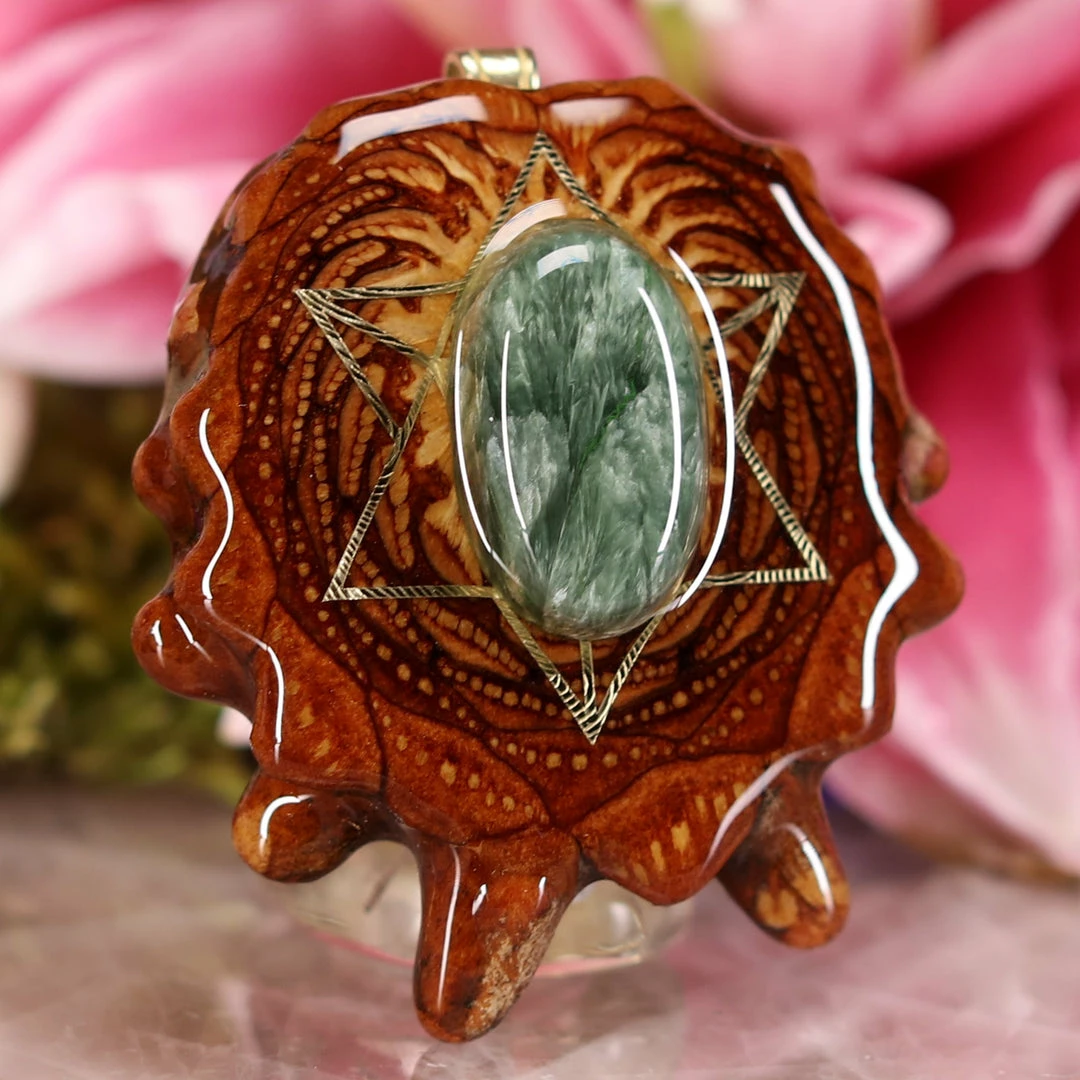 Every pinecone pendant is an elegant gift from Mother Nature — unveiling the ornate Sacred Geometry hidden at the center of one of the world’s densest Pinecones. Because only one cross-section is taken from the “heart” of each Cone, every pendant is absolutely unique, and truly one-of-a-kind.