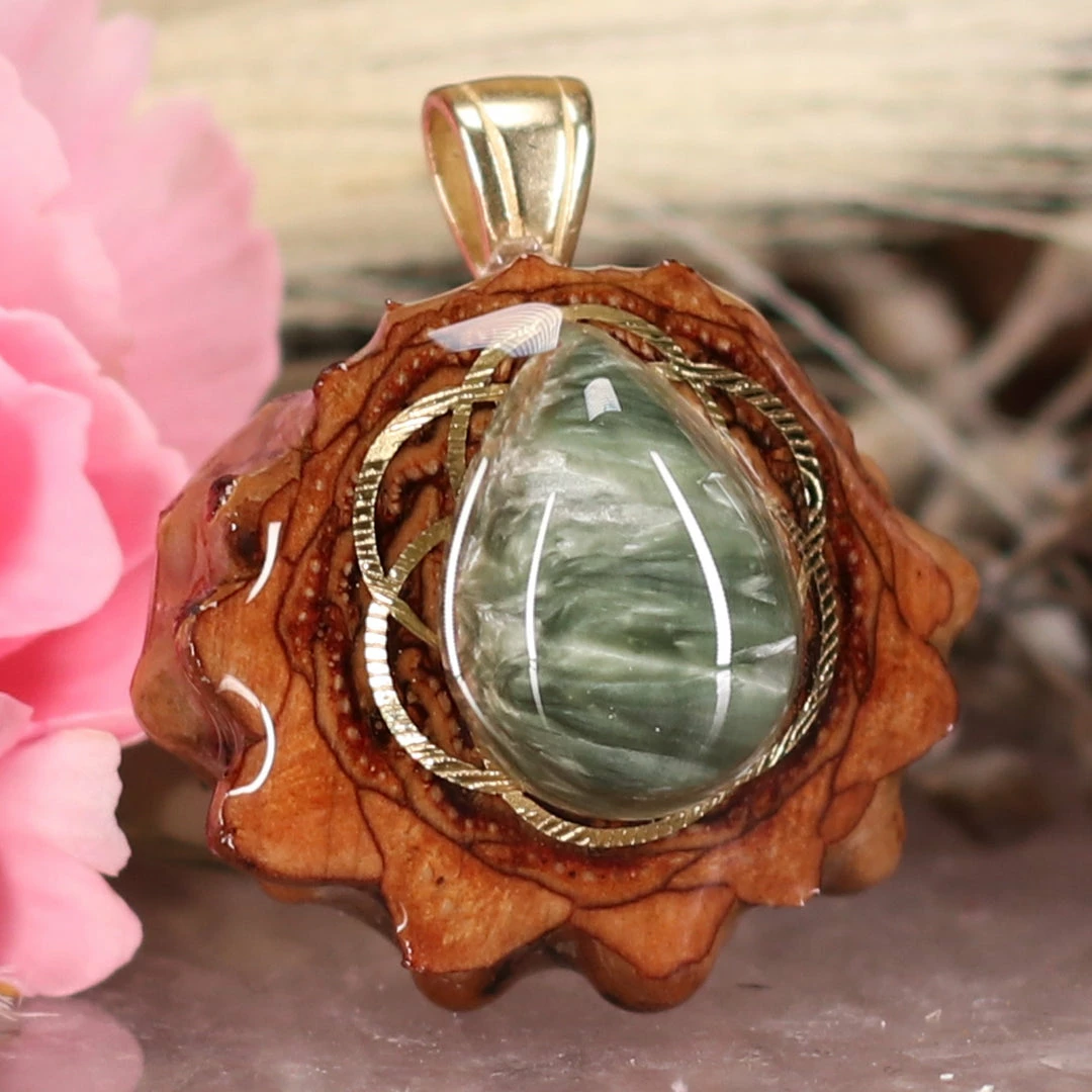 TEP Seraphinite With Gold Seed Of Life Pendants