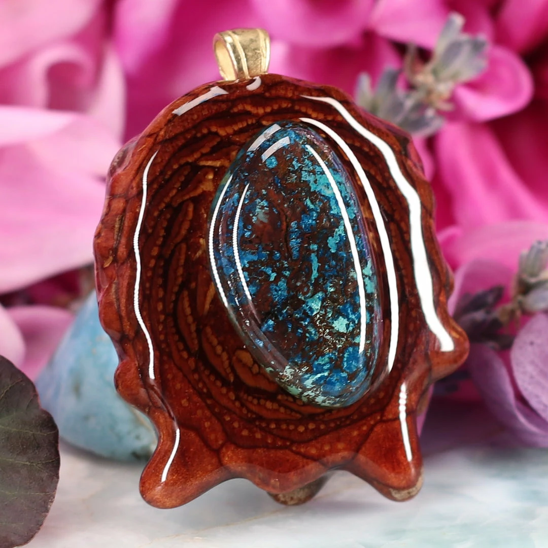 Every pinecone pendant is an elegant gift from Mother Nature — unveiling the ornate Sacred Geometry hidden at the center of one of the world’s densest Pinecones. Because only one cross-section is taken from the “heart” of each Cone, every pendant is absolutely unique, and truly one-of-a-kind.