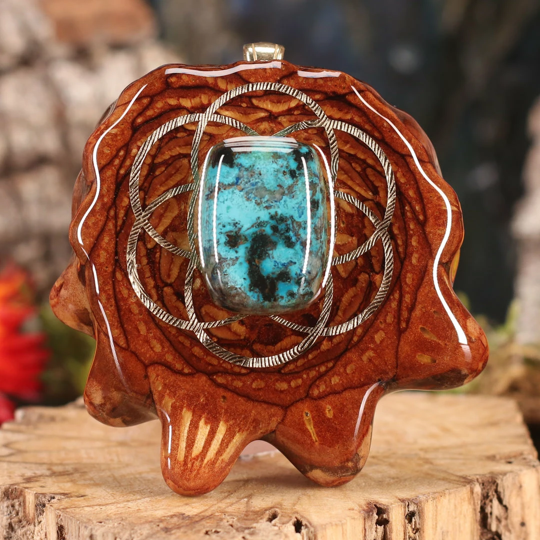 Every pinecone pendant is an elegant gift from Mother Nature — unveiling the ornate Sacred Geometry hidden at the center of one of the world’s densest Pinecones. Because only one cross-section is taken from the “heart” of each Cone, every pendant is absolutely unique, and truly one-of-a-kind.