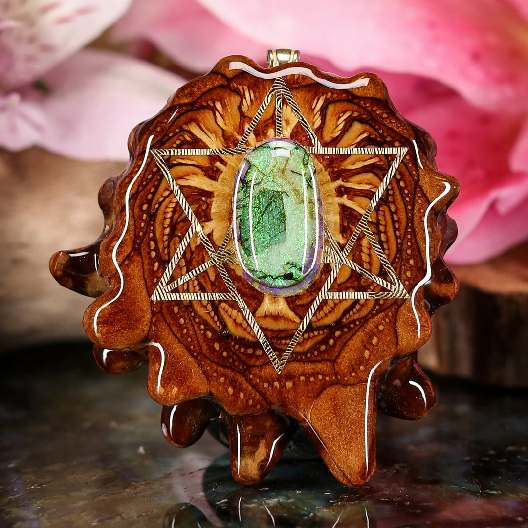 Every pinecone pendant is an elegant gift from Mother Nature — unveiling the ornate Sacred Geometry hidden at the center of one of the world’s densest Pinecones. Because only one cross-section is taken from the “heart” of each Cone, every pendant is absolutely unique, and truly one-of-a-kind.