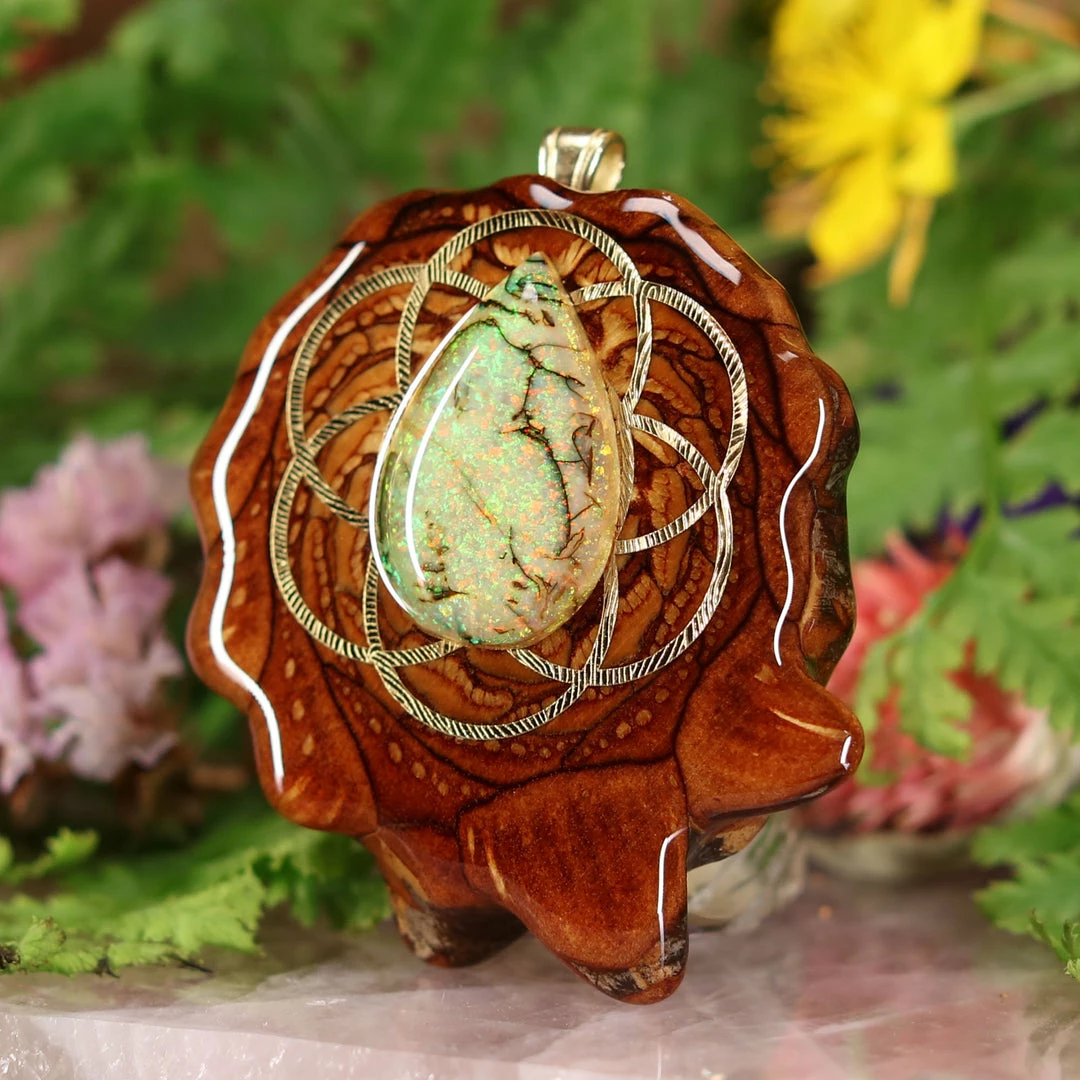 Every pinecone pendant is an elegant gift from Mother Nature — unveiling the ornate Sacred Geometry hidden at the center of one of the world’s densest Pinecones. Because only one cross-section is taken from the “heart” of each Cone, every pendant is absolutely unique, and truly one-of-a-kind.
