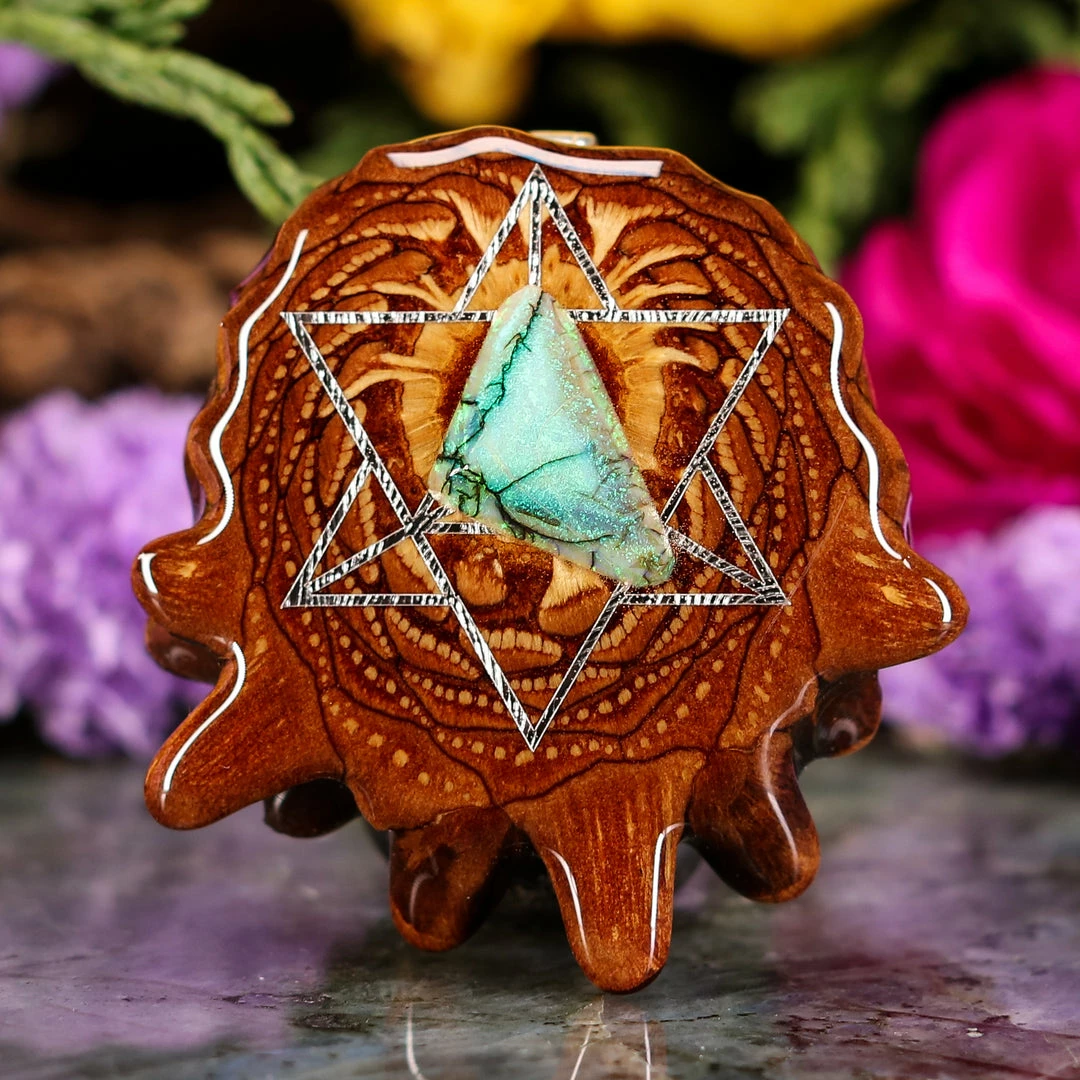 Every pinecone pendant is an elegant gift from Mother Nature — unveiling the ornate Sacred Geometry hidden at the center of one of the world’s densest Pinecones. Because only one cross-section is taken from the “heart” of each Cone, every pendant is absolutely unique, and truly one-of-a-kind.