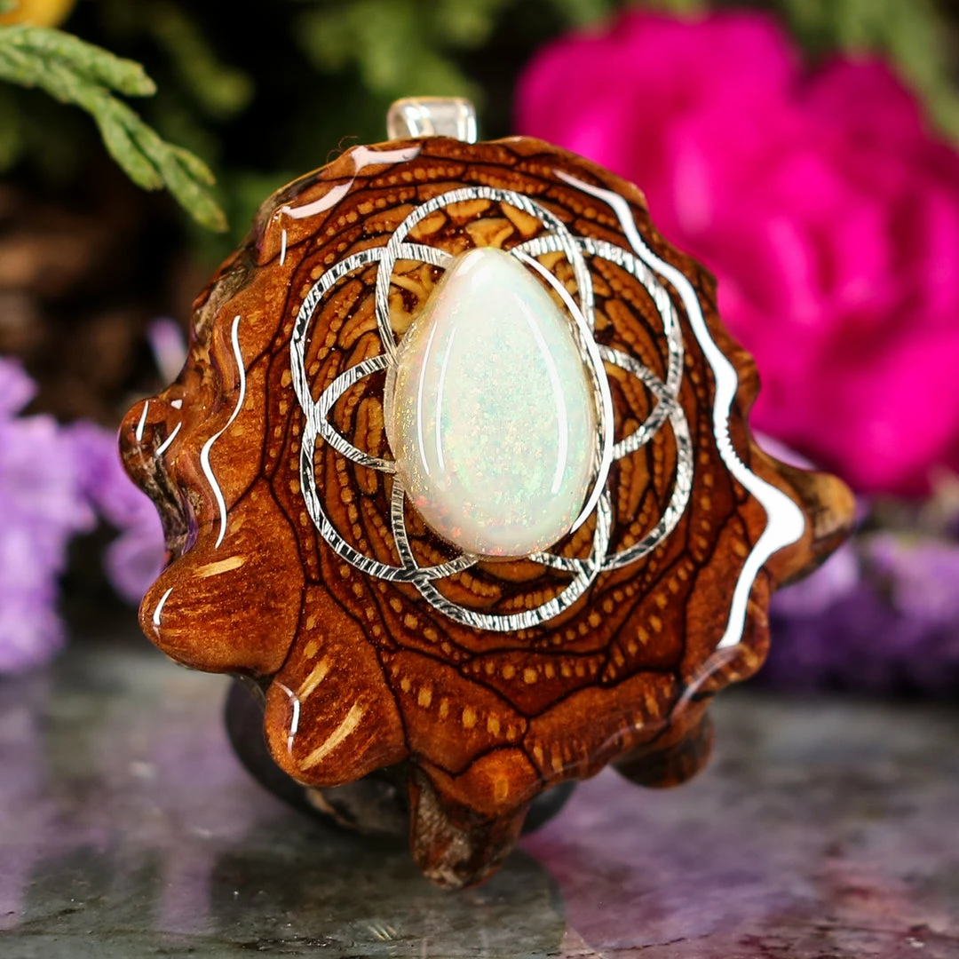 Every pinecone pendant is an elegant gift from Mother Nature — unveiling the ornate Sacred Geometry hidden at the center of one of the world’s densest Pinecones. Because only one cross-section is taken from the “heart” of each Cone, every pendant is absolutely unique, and truly one-of-a-kind.