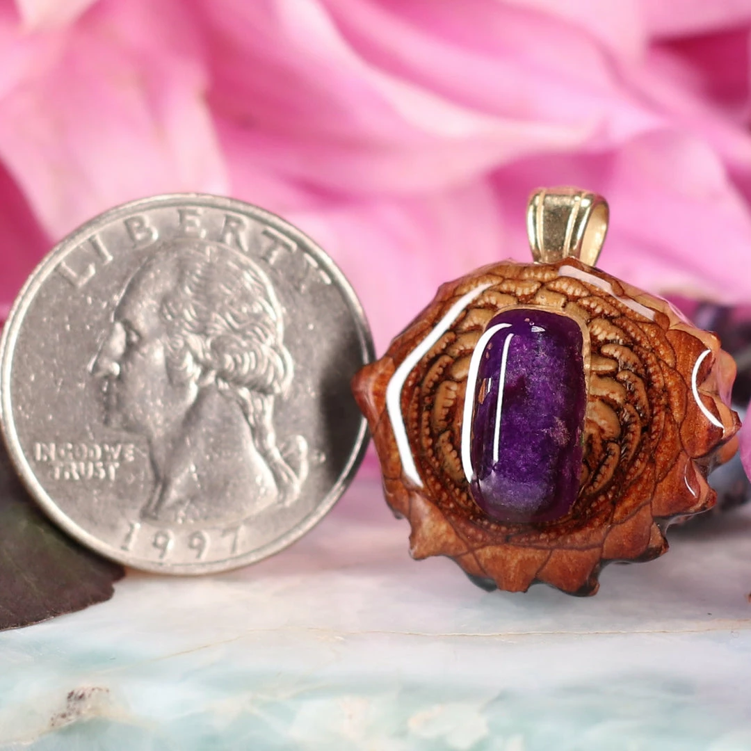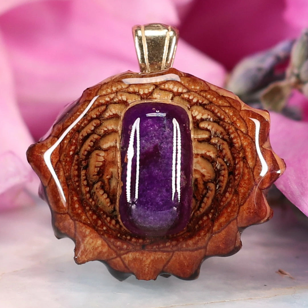 Every pinecone pendant is an elegant gift from Mother Nature — unveiling the ornate Sacred Geometry hidden at the center of one of the world’s densest Pinecones. Because only one cross-section is taken from the “heart” of each Cone, every pendant is absolutely unique, and truly one-of-a-kind.