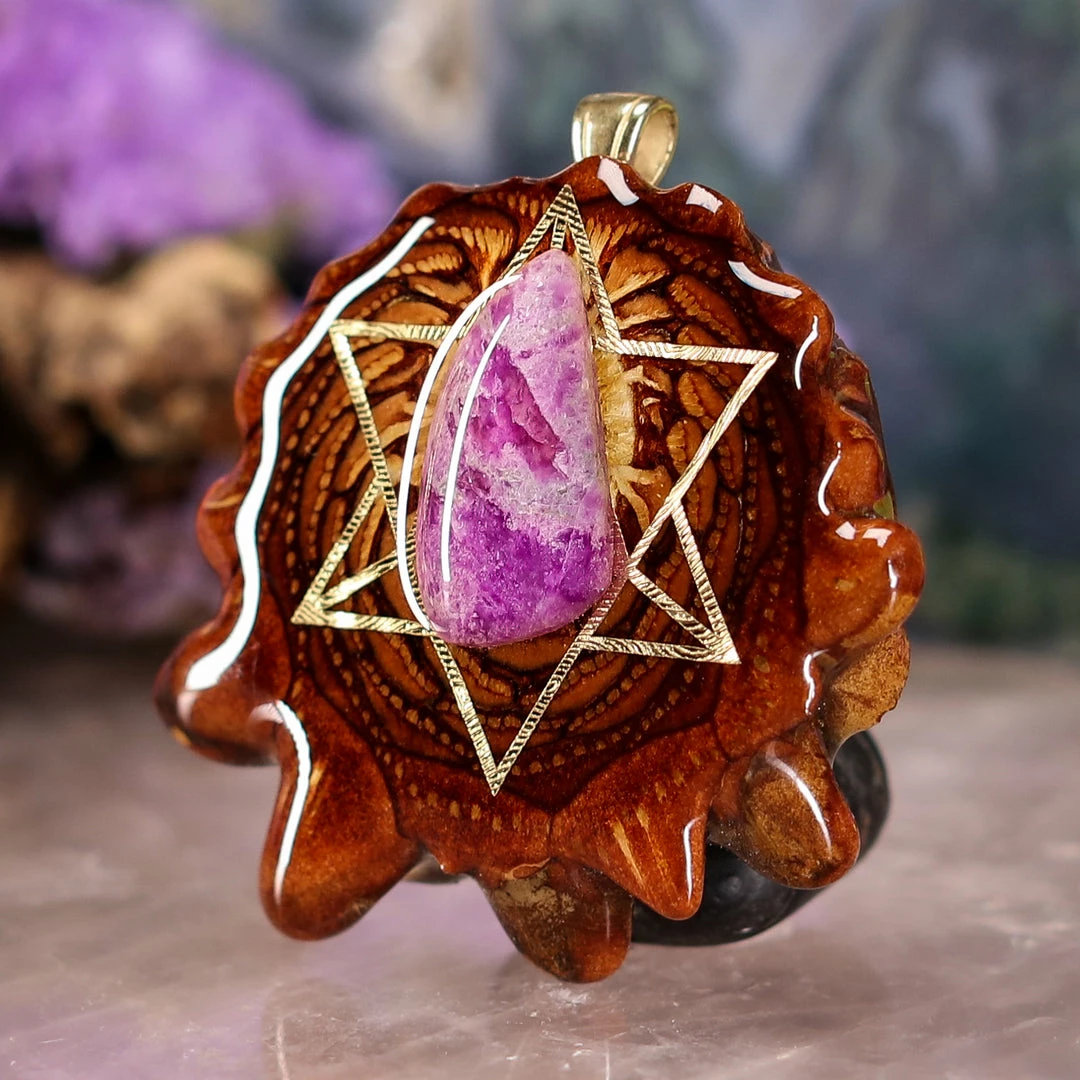 TEP Sugilite With Gold Merkaba Pendants
