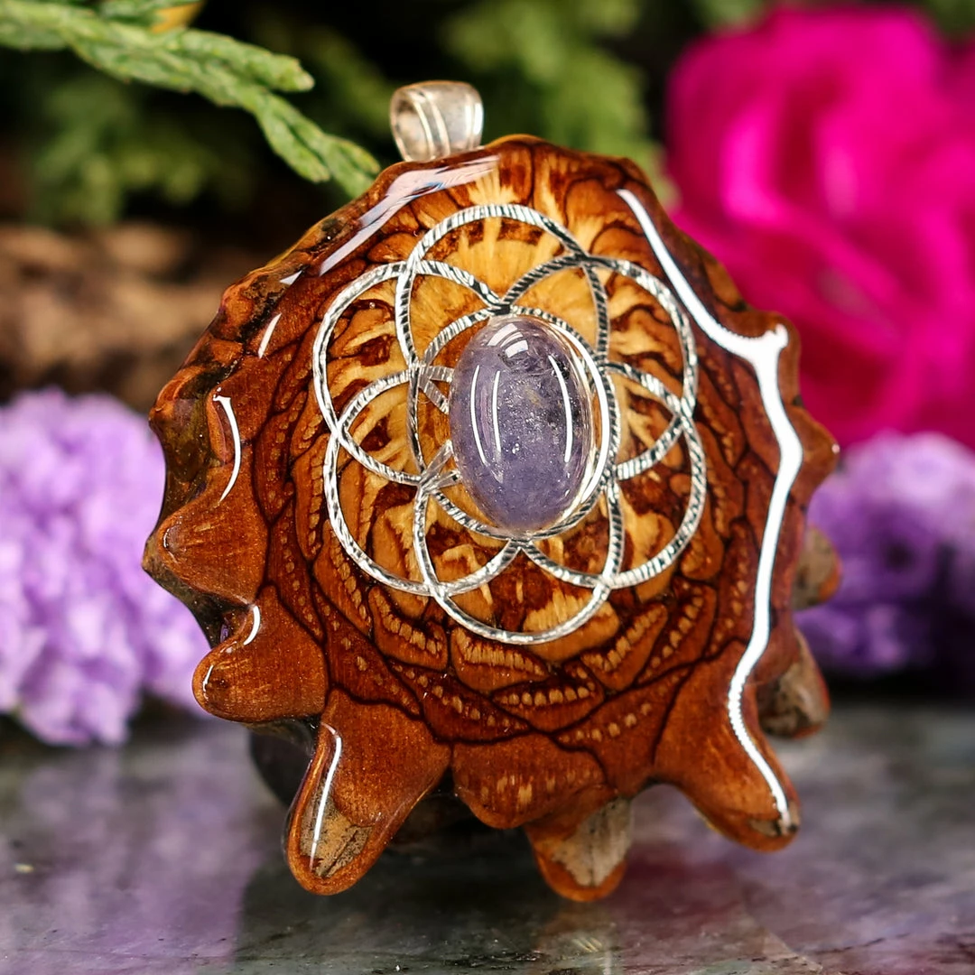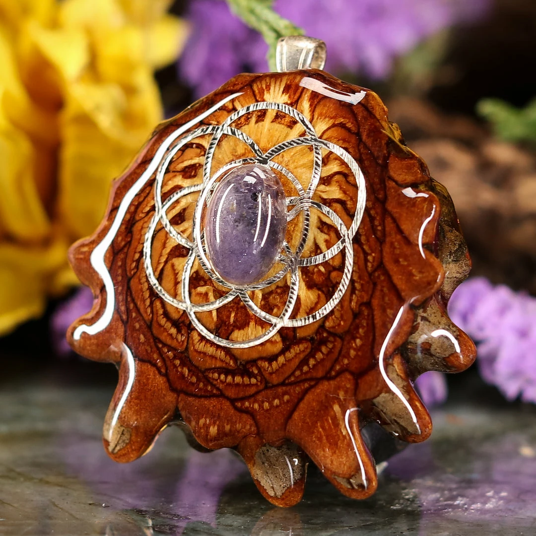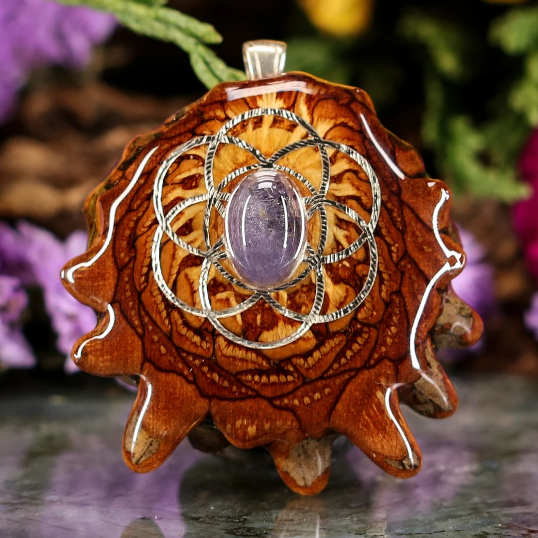 Every pinecone pendant is an elegant gift from Mother Nature — unveiling the ornate Sacred Geometry hidden at the center of one of the world’s densest Pinecones. Because only one cross-section is taken from the “heart” of each Cone, every pendant is absolutely unique, and truly one-of-a-kind.