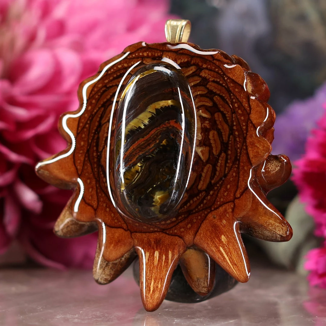 Every pinecone pendant is an elegant gift from Mother Nature — unveiling the ornate Sacred Geometry hidden at the center of one of the world’s densest Pinecones. Because only one cross-section is taken from the “heart” of each Cone, every pendant is absolutely unique, and truly one-of-a-kind.