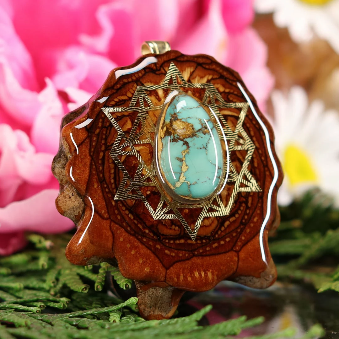 Every pinecone pendant is an elegant gift from Mother Nature — unveiling the ornate Sacred Geometry hidden at the center of one of the world’s densest Pinecones. Because only one cross-section is taken from the “heart” of each Cone, every pendant is absolutely unique, and truly one-of-a-kind.