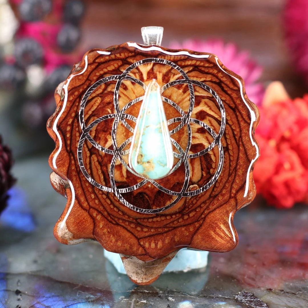 Every pinecone pendant is an elegant gift from Mother Nature — unveiling the ornate Sacred Geometry hidden at the center of one of the world’s densest Pinecones. Because only one cross-section is taken from the “heart” of each Cone, every pendant is absolutely unique, and truly one-of-a-kind.