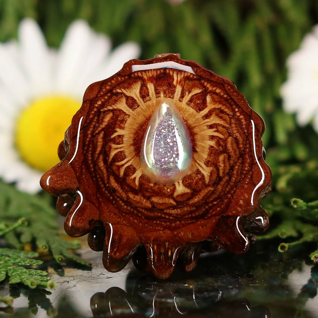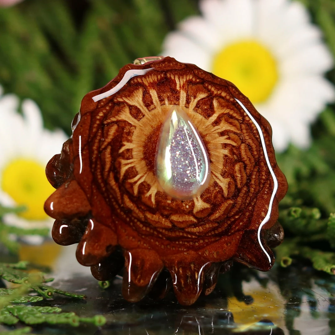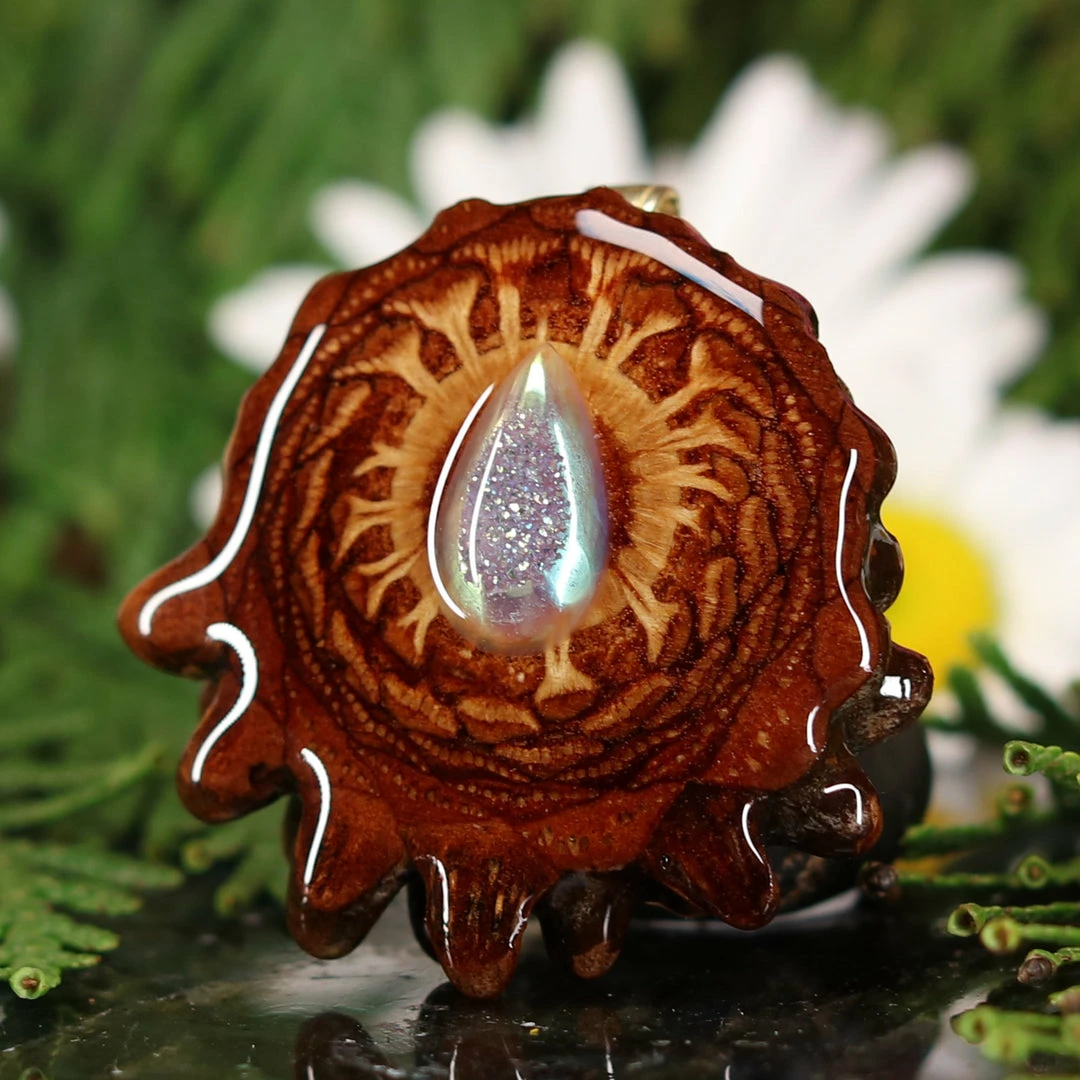 Every pinecone pendant is an elegant gift from Mother Nature — unveiling the ornate Sacred Geometry hidden at the center of one of the world’s densest Pinecones. Because only one cross-section is taken from the “heart” of each Cone, every pendant is absolutely unique, and truly one-of-a-kind.