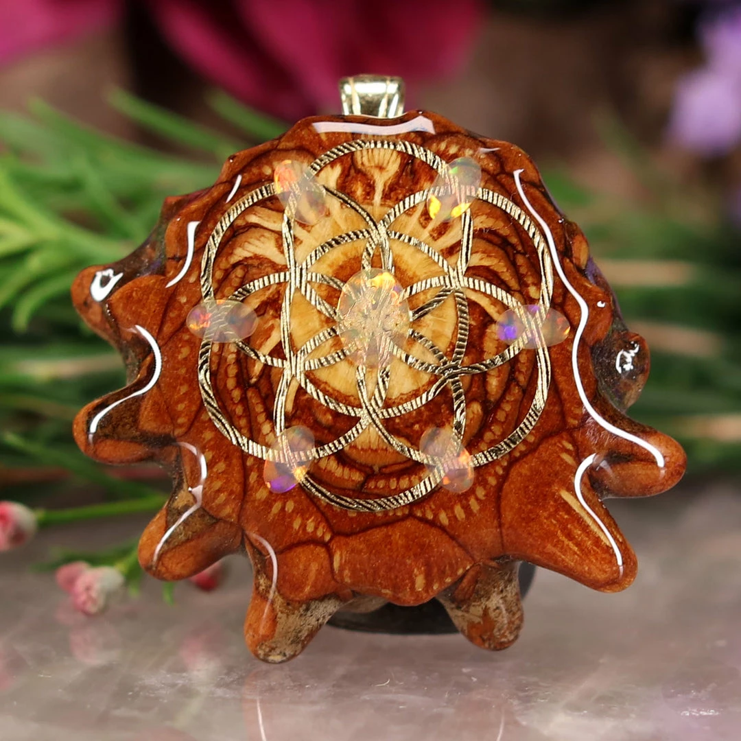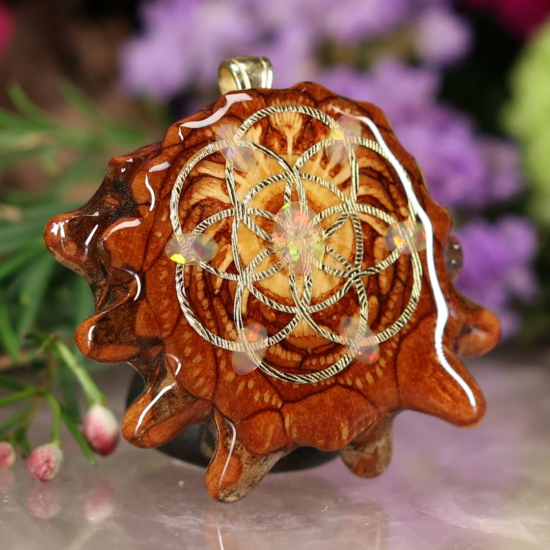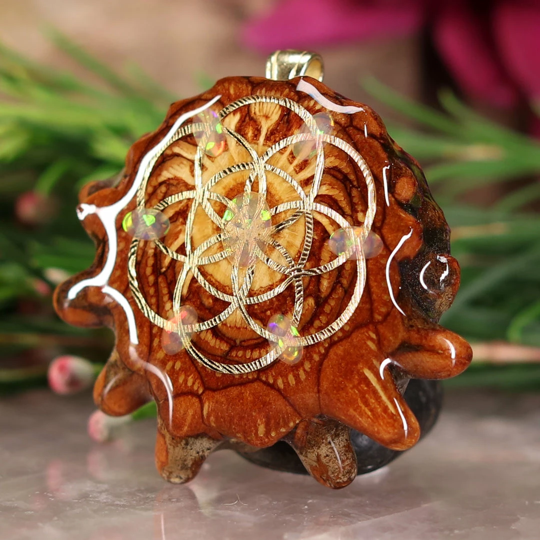 Every pinecone pendant is an elegant gift from Mother Nature — unveiling the ornate Sacred Geometry hidden at the center of one of the world’s densest Pinecones. Because only one cross-section is taken from the “heart” of each Cone, every pendant is absolutely unique, and truly one-of-a-kind.