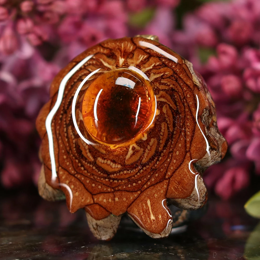 Every pinecone pendant is an elegant gift from Mother Nature — unveiling the ornate Sacred Geometry hidden at the center of one of the world’s densest Pinecones. Because only one cross-section is taken from the “heart” of each Cone, every pendant is absolutely unique, and truly one-of-a-kind.