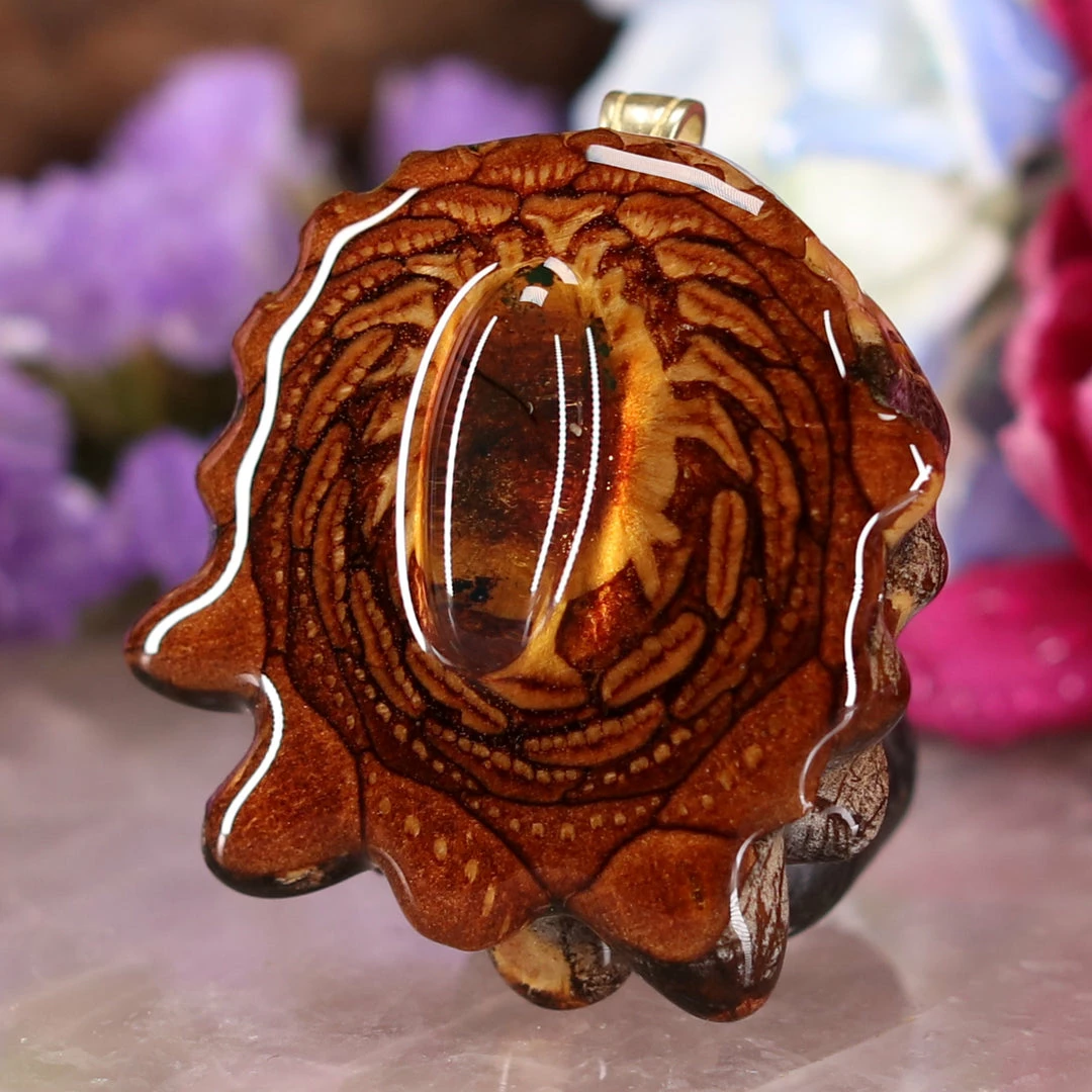 Every pinecone pendant is an elegant gift from Mother Nature — unveiling the ornate Sacred Geometry hidden at the center of one of the world’s densest Pinecones. Because only one cross-section is taken from the “heart” of each Cone, every pendant is absolutely unique, and truly one-of-a-kind.