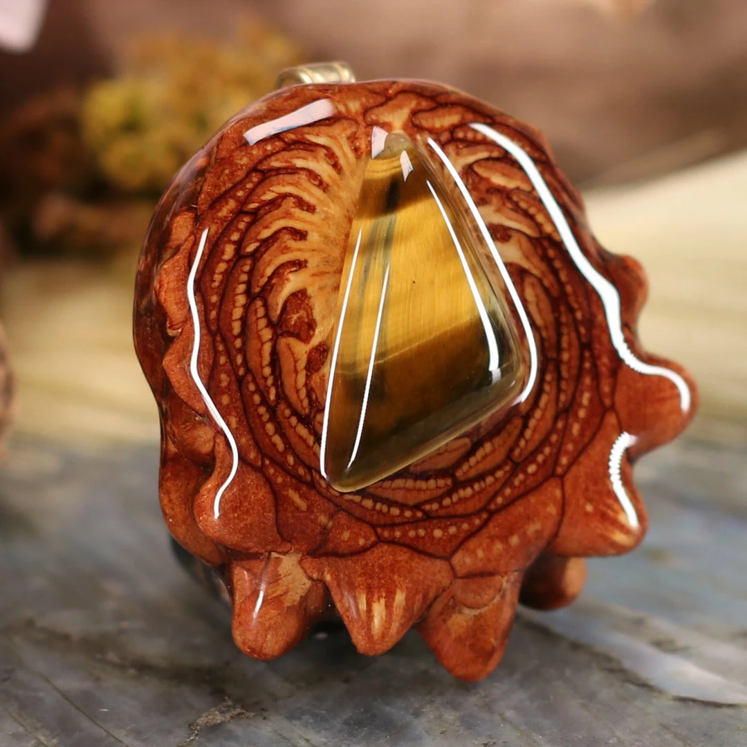 Every pinecone pendant is an elegant gift from Mother Nature — unveiling the ornate Sacred Geometry hidden at the center of one of the world’s densest Pinecones. Because only one cross-section is taken from the “heart” of each Cone, every pendant is absolutely unique, and truly one-of-a-kind.