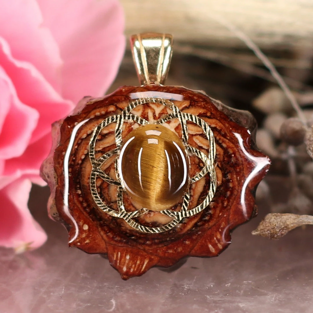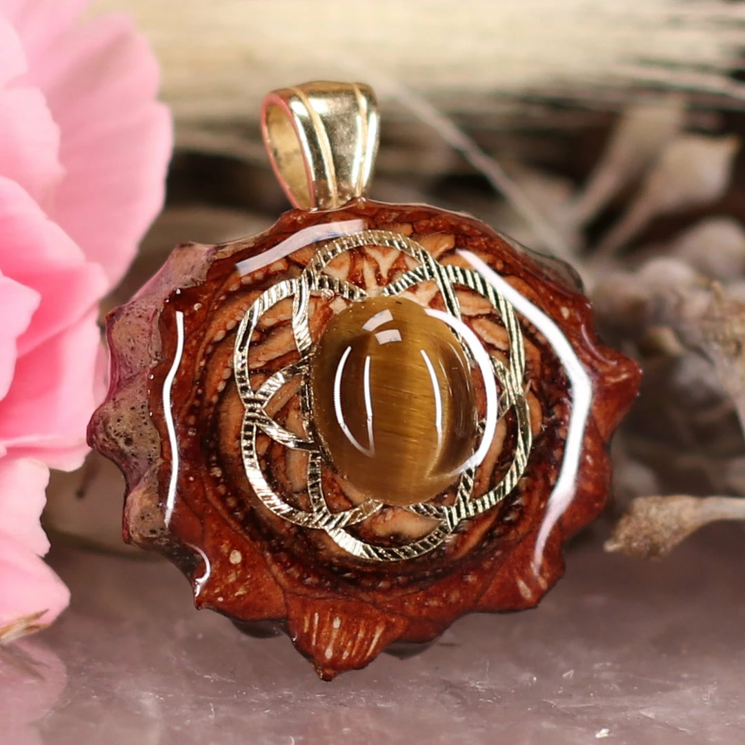 Every pinecone pendant is an elegant gift from Mother Nature — unveiling the ornate Sacred Geometry hidden at the center of one of the world’s densest Pinecones. Because only one cross-section is taken from the “heart” of each Cone, every pendant is absolutely unique, and truly one-of-a-kind.