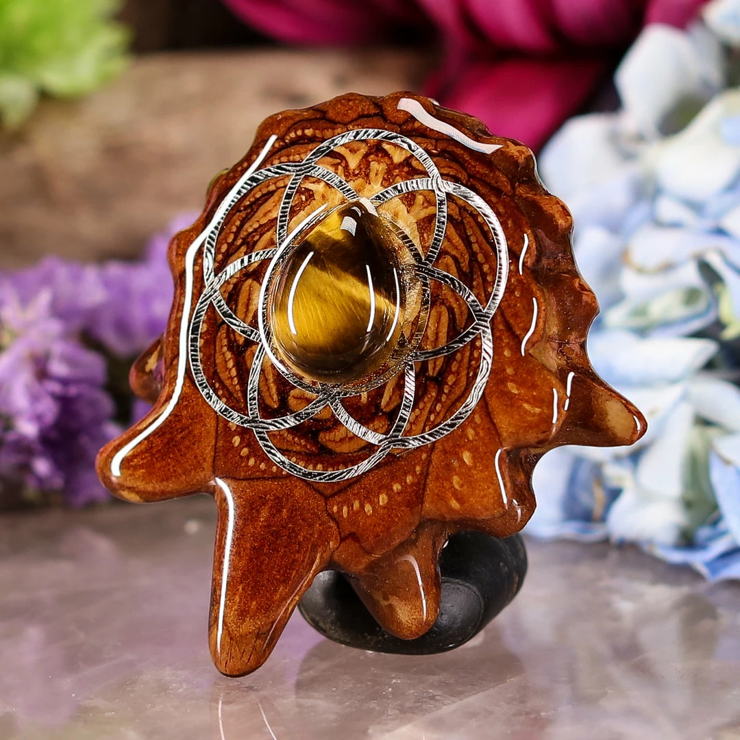 Every pinecone pendant is an elegant gift from Mother Nature — unveiling the ornate Sacred Geometry hidden at the center of one of the world’s densest Pinecones. Because only one cross-section is taken from the “heart” of each Cone, every pendant is absolutely unique, and truly one-of-a-kind.