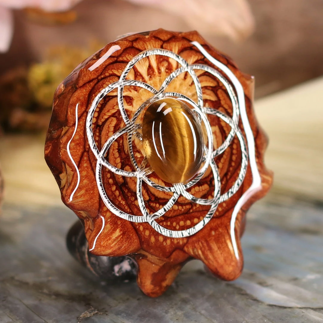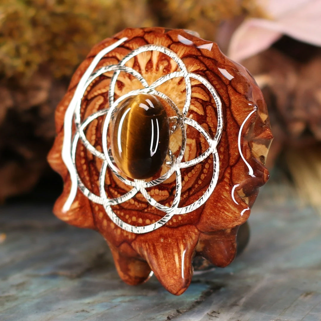 Every pinecone pendant is an elegant gift from Mother Nature — unveiling the ornate Sacred Geometry hidden at the center of one of the world’s densest Pinecones. Because only one cross-section is taken from the “heart” of each Cone, every pendant is absolutely unique, and truly one-of-a-kind.
